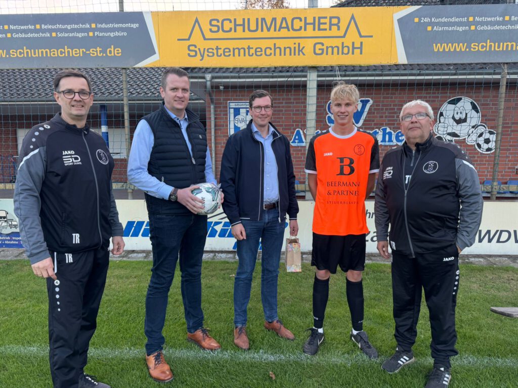 Heute möchten wir uns ganz herzlich beim Steuerbüro Beermann & Partner bedanken. Im Rahmen einer Trainingseinheit überreichte unsere B3-Juniorenmannschaft ein kleines Präsent an Hilmar Gerdes und Henning Köster als Dankeschön für das Sponsoring der neuen Trikots.